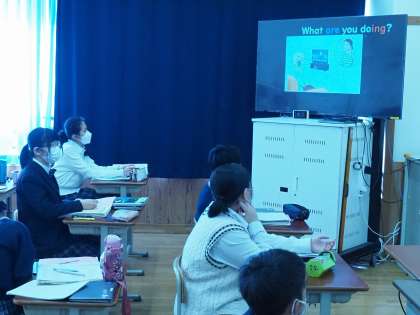 英語の授業では、現在形・過去形の使い分けについて学習していました。