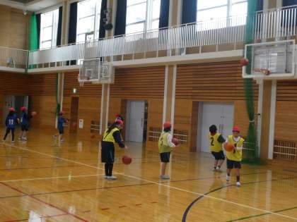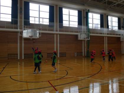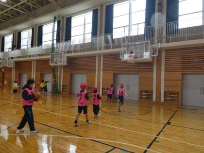 シュートを入れるためにはどこを狙うといいのか。コートのどこからシュートを打つと入りやすいのかチームで話し合いながら練習をしていました。