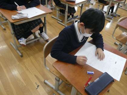 電磁石の性質のテストを行いました。最後まで時間いっぱい見直しをして少しでも点数をとろうと頑張っている姿がありました。