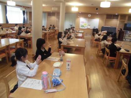 食育の授業では、「お箸の正しい持ち方」を学習しました。