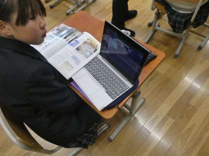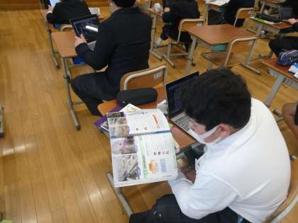 これまでの自然災害がどのような原因で起こってきたのかを教科書やGIGA端末を活用して調べていました。