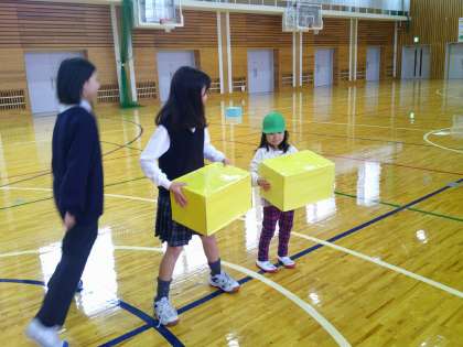 えんぴつの持ち方、ランドセル体験、秀蓮体操、クイズ、はこはこつみつみ、