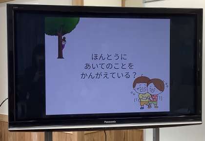 今日の性教育では「ほんとうにあいてのことをかんがえている?」をテーマに学習しました。あいてが「いやだ」と言わなくても「不快」に感じていることがあるかもしれない、知らず知らずのうちにあいてのプライベートゾーンにふみこんでいるかもしれない…など、動画を見ながら考えました。