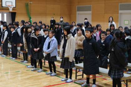 今日の2時間目に「4年生ありがとうの会」を行いました。1〜3年生が出し物をしたり,4年生は歌の贈り物をしたりと,感謝の気持ちを込めて発表していました。
