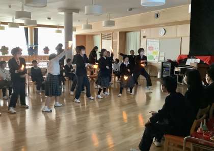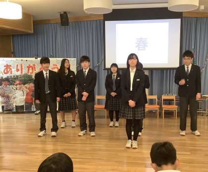 9年生からも、1〜 8年生にむけて、1年間のふり返りとともに心のこもった言葉と歌のプレゼントがありました。