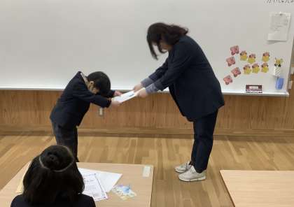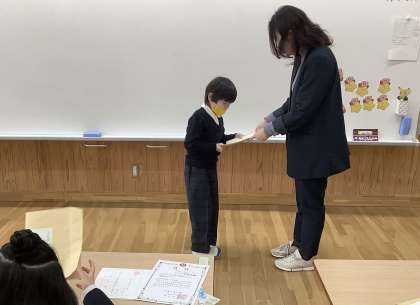 4月から学年が1つあがることをとても楽しみにしている子どもたち、先生から終了証を受け取る姿がとても頼もしく、この1年の成長を感じることができました。