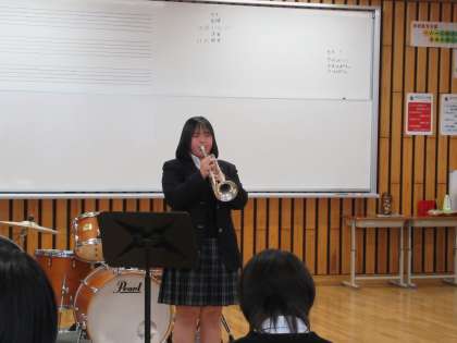 本日、校内で吹奏楽部による今年度最後のコンサートがありました。5年生から8年生の一人一人が自分の楽器を部員や教職員の前で奏でました。