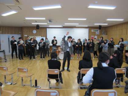 卒業した9年生も見に来てくれており、たくさんの人の前でこれまでの成果を見せてくれました。最後にはフルートの演奏と、教職員と卒業生による合唱もありました。