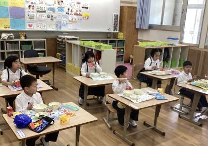 友だちと楽しく給食時間を過ごそうね!