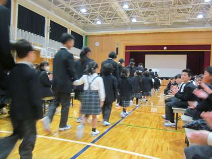全校生徒に見守られての入場は、少し緊張した様子でしたが、