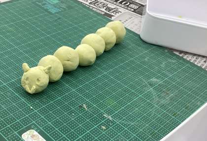 1つめの課題は丸いねんどをたくさんつなげて「いもむし」を作ること。