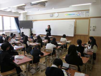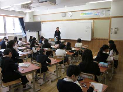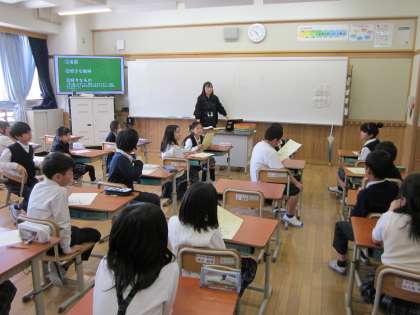 自分のことについて書きだすときに、友だちと会話をしながら、引き出して書いていました。自分のことや友だちのことを振り返って書くと、整理しやすいようです。カードを見ながら一生懸命自己紹介する姿が見られました。