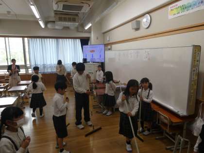 上級生として、2年生に掃除の仕方のお手本を見せてくれていました。