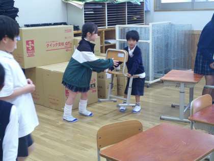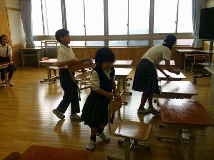 一緒に机を運ぶ姿が見られました。