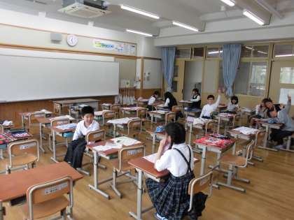 給食当番を待つ間は、自分の席に座って待ちます。