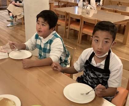 おいしいおやつを作ることもめあてですが、今日のめあては1年生や新しく入級した友だち、新しいたてわりグループの友だちと仲良くなることです!