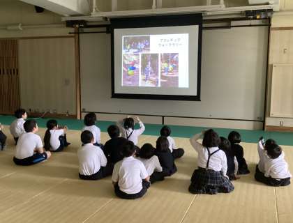 4年生、8年生による「山の家宿泊学習」の報告会がありました。