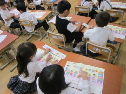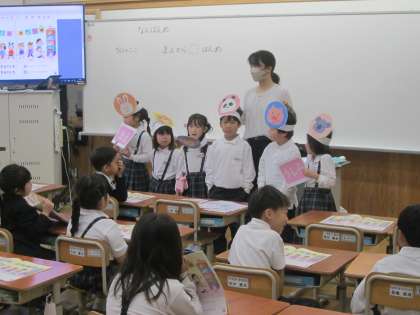 算数の授業で前から何番目、後ろから何番目について学習しました。友だちと問題を出し合いながら、楽しく学習に取り組むことができました。
