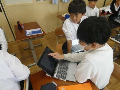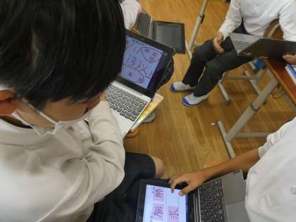 国語の学習は、漢字の形の音・意味の学習のなかで、黒崎先生から出された漢字をGIGA端末を活用して仲間分けをしていました。
