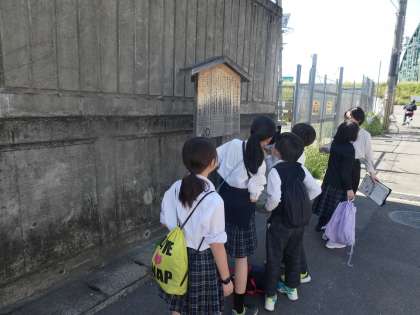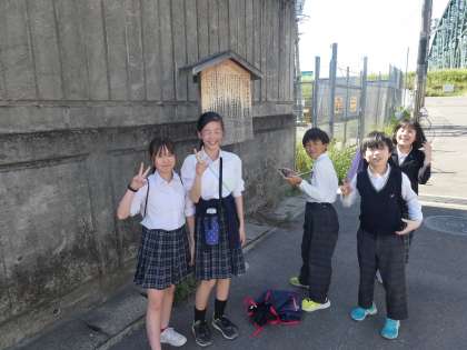蓮花タイムの学習で、クラスで分担をして向島の歴史を知るために地域の「駒札」を探しに行きました。