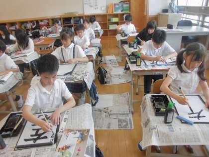 今日は「左右」の筆順に気を付けて字形を整えて書きました。