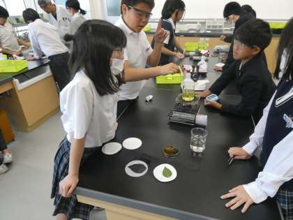 前日からアルミニウムを葉に巻いて日光をあてないようにしたものを使って学習を進めました。
