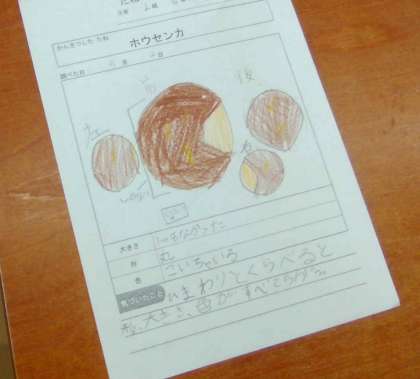 よく見て特徴をとらえ、観察カードにくわしく記録しています。