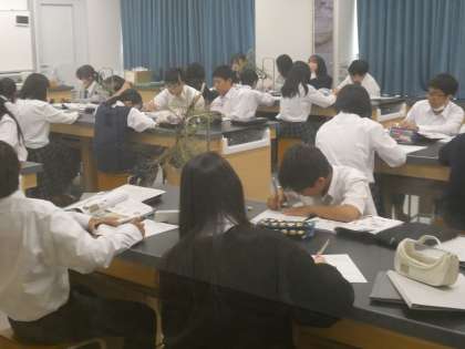 マツとアブラナの花の違いについて,実物を観察しながら学習を進めていました。