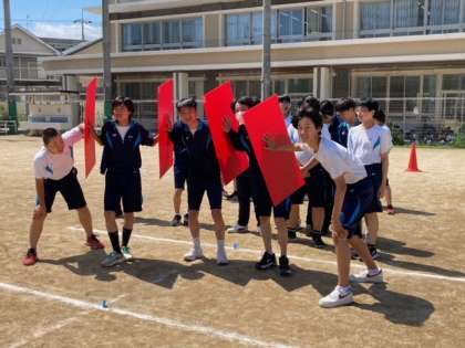 パーテーションリレーは,クラスを3つに分けて組んでいきます。みんな歓声を上げながら頑張っていました!