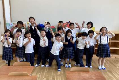 完成したけん玉で遊んでいると、けん玉が得意な生徒のまわりにみんなが集まって練習していました。けん玉はお家の方に見せたくてに持ち帰った生徒もいますが、また学校に持ってきて練習しようね、と話をしています。