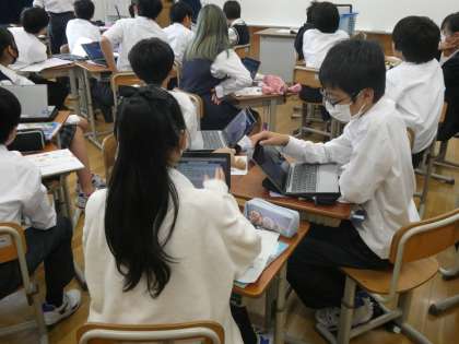 保健体育の学習で、調和のとれた生活を目指して、先生ごとの生活習慣の課題を見つけ、改善案をグループで話合い共有を行っていました。