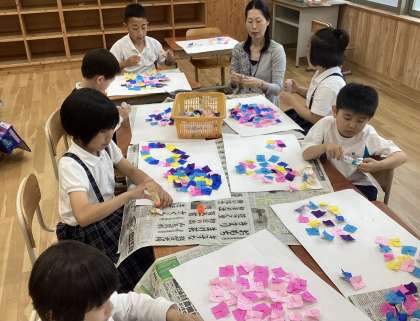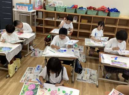 1組 1〜6年生 図工「あじさいの絵」