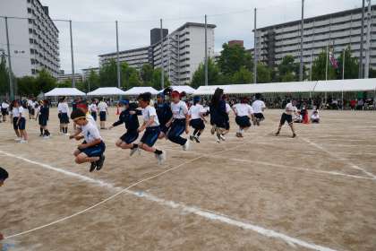 学年種目「大縄」では、アツい戦いが繰り広げられました。声をかけあいながら一生懸命跳ぶ姿、みんなを1回でも多く跳ばそうと奮闘する回し手の姿、本当に格好良かったです。