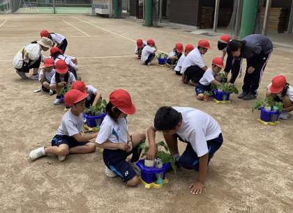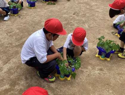 「3本ぬいてね」「肥料のやりかたはこうだよ」と1年生に丁寧に教えていました。