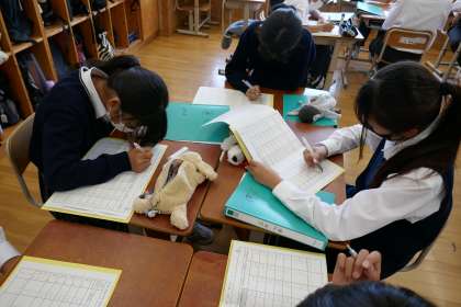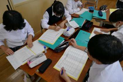 総括考査に向けて計画表を作成しています。7年生になると実施する教科数も増えるので、より計画的な学習が必要です。見通しをもって取り組み、自信をもって本番を迎えられるようにしましょう。