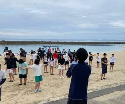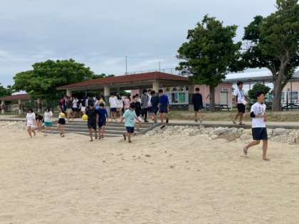 朝食も終わり、マリン体験へ向けて準備中の様子です。