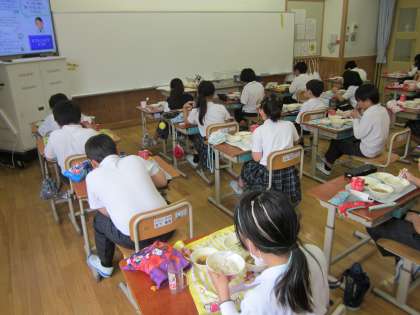 なごみ献立の動画を見ながらこどもたちは楽しそうに学んでいました。