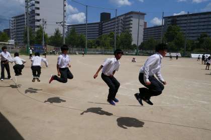 昼休みの時間を使って大縄跳びの練習をしている人たちがいました。暑い中,お疲れ様!練習の成果が本番で発揮できることを願っていますよ!