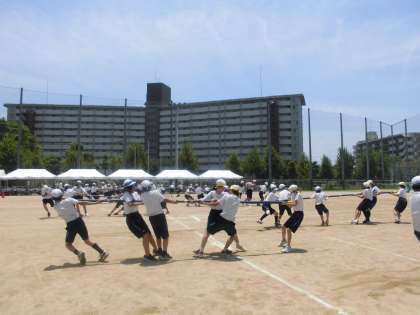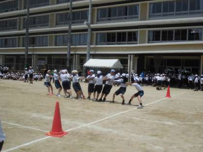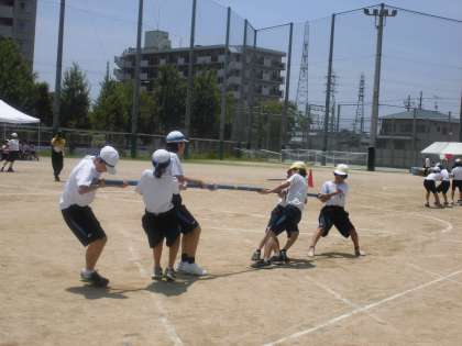 1試合目、全力で棒を引いている様子です。