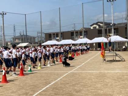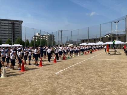 体育委員長と生活環境委員長から全校生徒に向けて,気合の一言と諸注意が伝えられました!熱気が高まってきました!