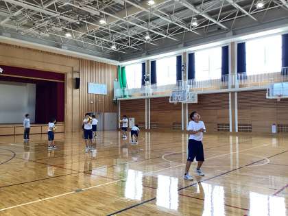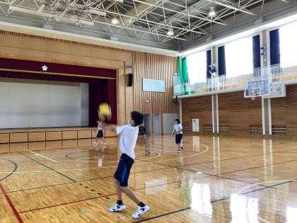 7月2日の合同球技大会にむけて「ワンバウンドバレー」の練習をしています。