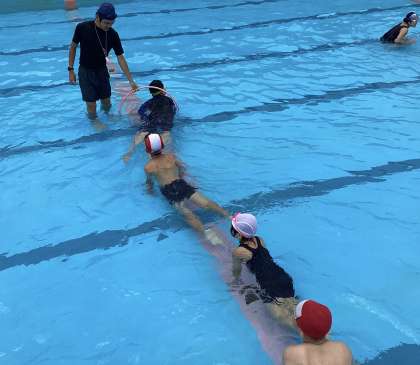 次は「ワニさんおよぎ」でわっかくぐりをしました。
