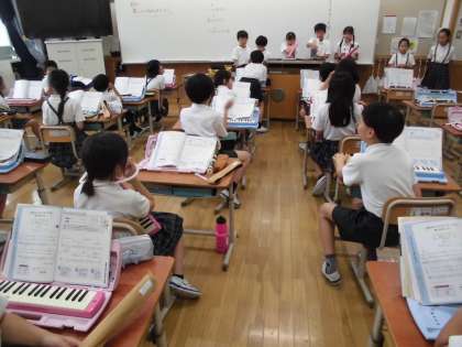 今日はグループで「楽しいマーチ」をえんそうしてみんなに見てもらいました。