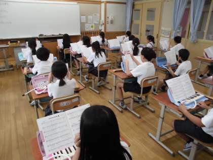 今日は「世界を旅する音楽室」という曲を聴き、歌いました。
