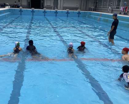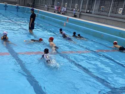 みんな「わにさんおよぎ」がとても上手で、顔をつけて目だけを水面に出す…本物のわにさんおよぎをしている生徒もいました。