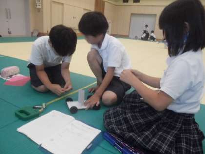 3人グループでそれぞれが自分たちが実験で使う「車」を作ります。