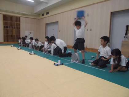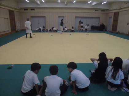 1時間目は教室で学習をし、2時間目は武道場へ移動。