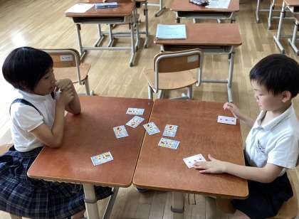 トランプで「5」をつくる神経衰弱をています。