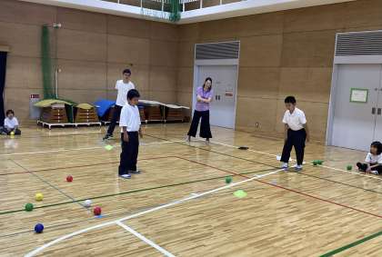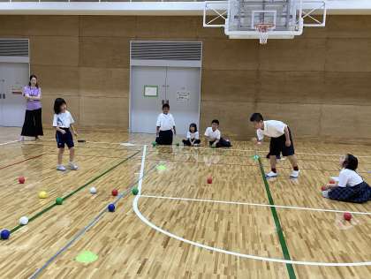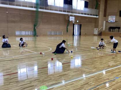 「向島わくわくクラブ」にむけて「スクエアボッチャ」の練習をしました。