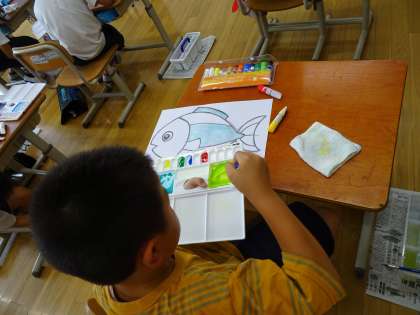絵の具セットに入っているパレットや筆洗の使い方をしり、